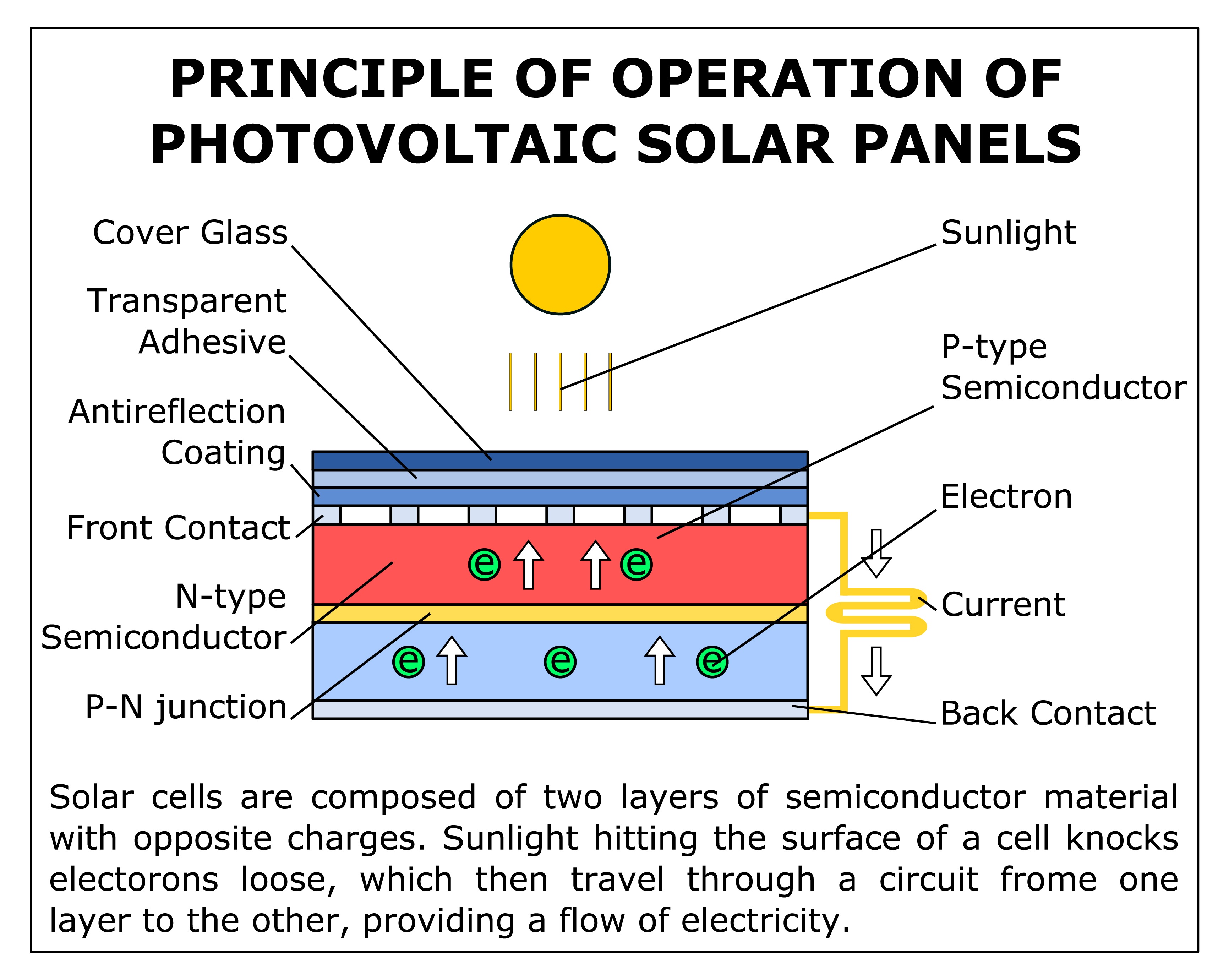 - 태양광 발전: 태양의 빛 에너지를 반도체 소자(태양 전지)를 통해 직접 전기에너지로 변환합니다.