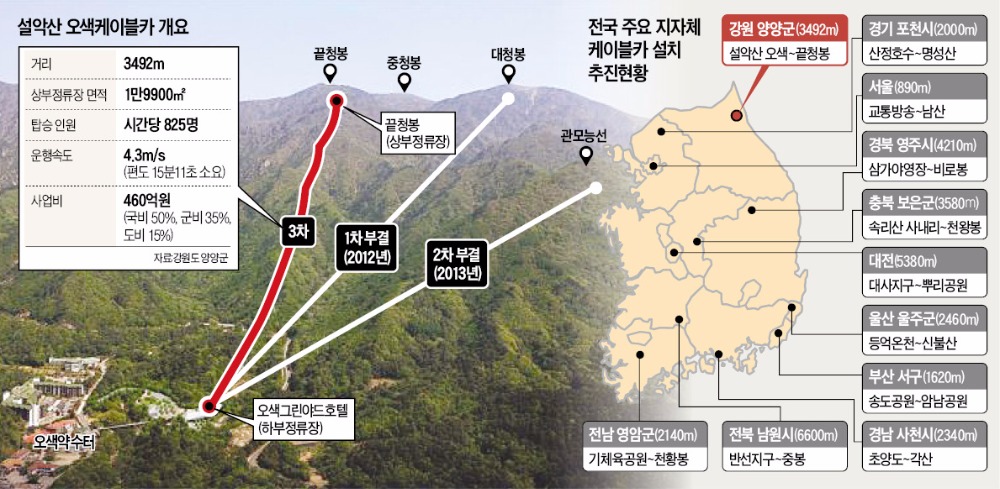 | 1 | 설악산 케이블카 | 강원 속초 | 권금성 정상에서 외설악과 동해바다를 한눈에 조망 |