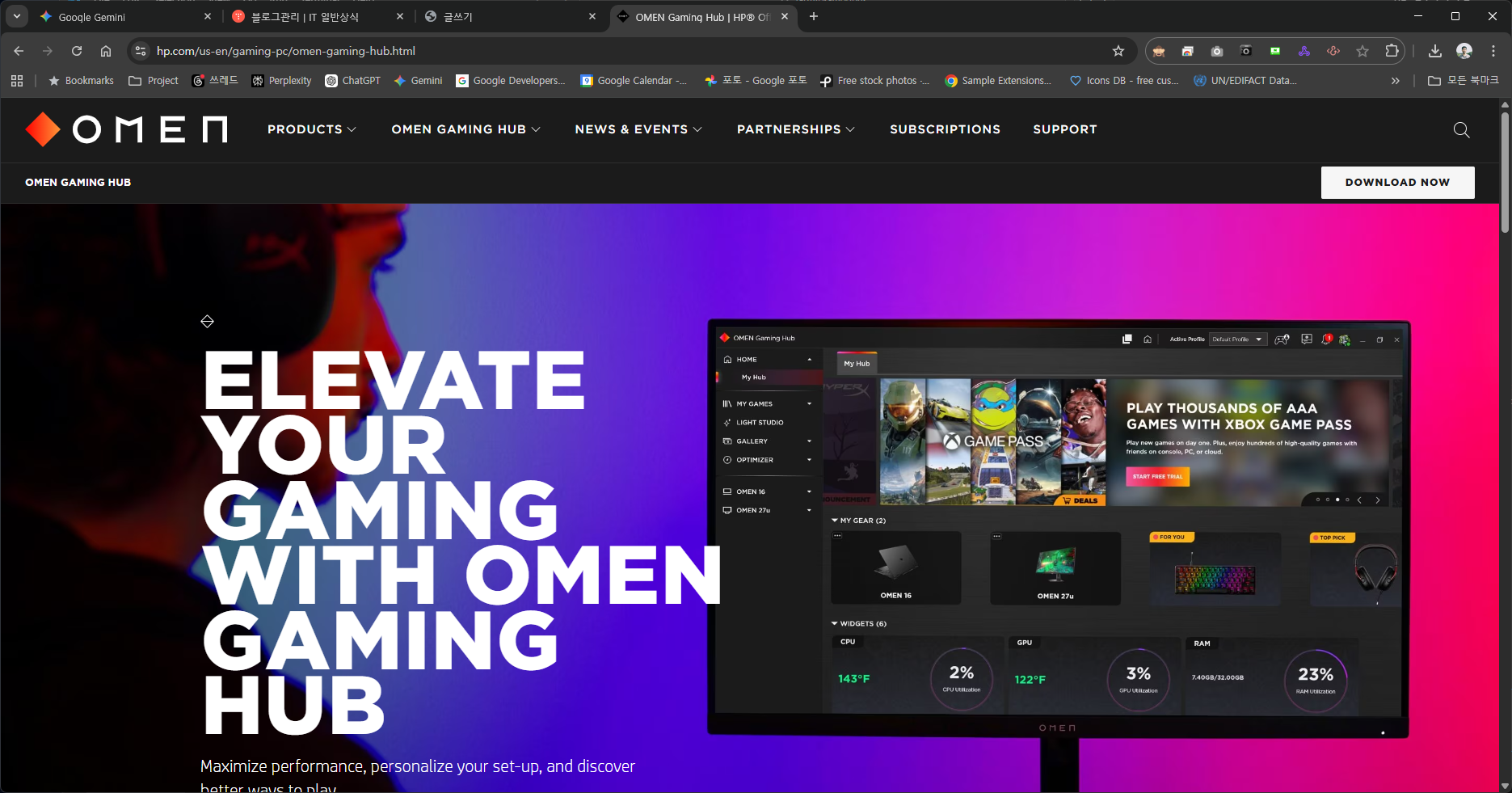 OMEN Gaming Hub는 HP(에이치피)에서 제공하는 게이밍 전용 통합 관리 소프트웨어입니다. 단순히 게임을 실행하는 기능을 넘어, PC의 성능을 극대화하고 하드웨어를 제어하는 '컨트롤 타워' 역할을 합니다.
